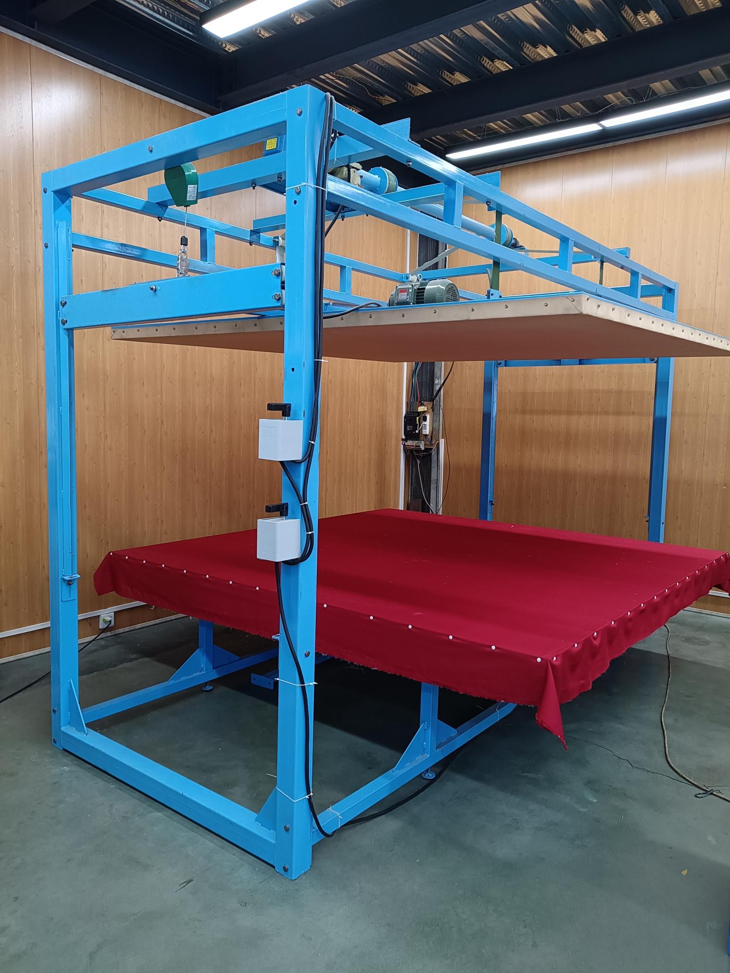 本全自動揉棉機(jī)為徽星機(jī)械機(jī)械制造有限公司研發(fā)新型產(chǎn)品,該全自動揉棉機(jī)由傳統(tǒng)的上傳動方式,改為下傳動方式。上傳動全自動揉棉機(jī)的主要缺點是噪音高,振動副度比較大,安裝時要配合地錨來固定機(jī)器,本新型機(jī)器(全自動揉棉機(jī))的下傳動裝置改變了以上的缺點。新一代全自動揉棉機(jī)(揉磨機(jī))操作方便,易于使用。適用于棉胎成型加工廠、踏花被廠、棉胎加工個體戶使用;全自動揉棉機(jī)揉制的棉胎(絮)平整、美觀、結(jié)實、耐用,全自動揉棉機(jī)(揉磨機(jī))使傳統(tǒng)的人工強(qiáng)體力勞動變?yōu)楸鞠盗袡C(jī)器的自動化機(jī)械作業(yè),特別是自動升降系統(tǒng)和定時揉棉設(shè)定,大大減輕了工人的勞動強(qiáng)度、提高了勞動效率。并且一人可看管多機(jī),效益非常顯著。全自動揉棉機(jī)其原理是電機(jī)帶動偏心運轉(zhuǎn)使上揉板運動,將棉鋪磨平、壓緊,使棉纖維與網(wǎng)線結(jié)合,成型棉胎。